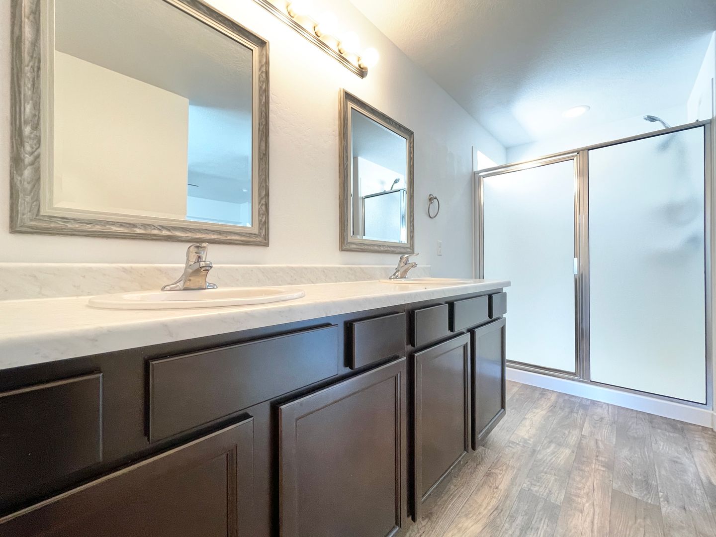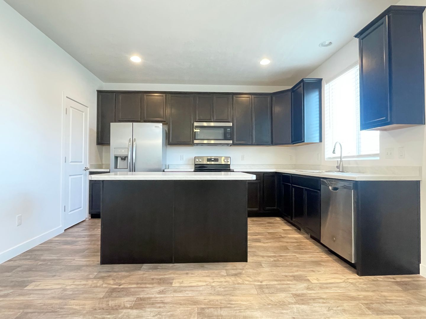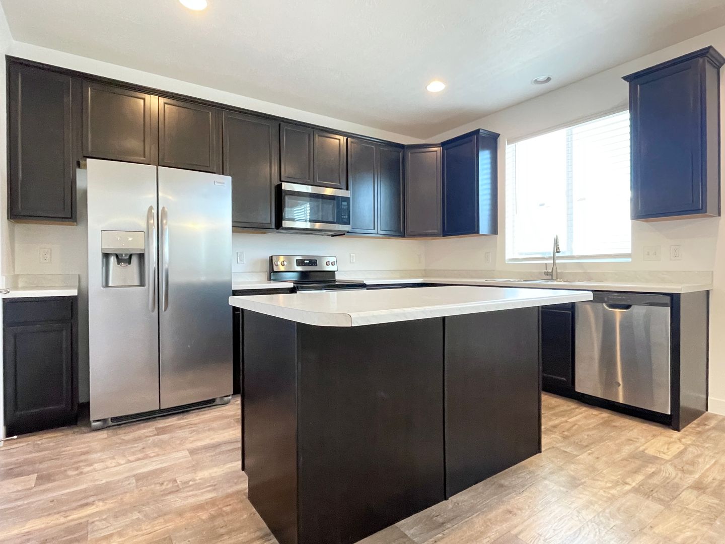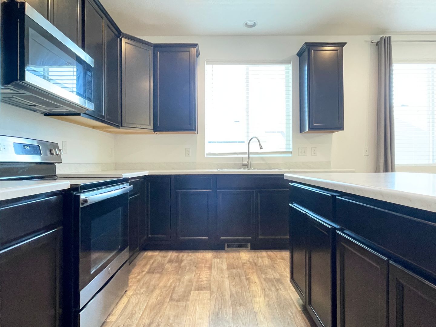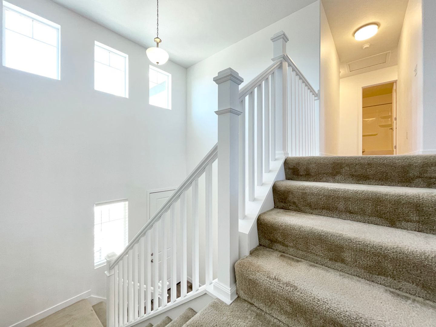 Ready for immediate move in, this spacious home spans over 2700 square feet with main floor living room, bright open kitchen and half bathroom. The top floor boasts a bonus loft space with wonderful lake views, laundry room, full bathroom and 3 bedrooms including the sprawling master suite and bath. Recently completed, the basement hosts 2 more bedrooms, third full bathroom, lots of storage space and walk out entrance into the fenced back yard with auto sprinklers!